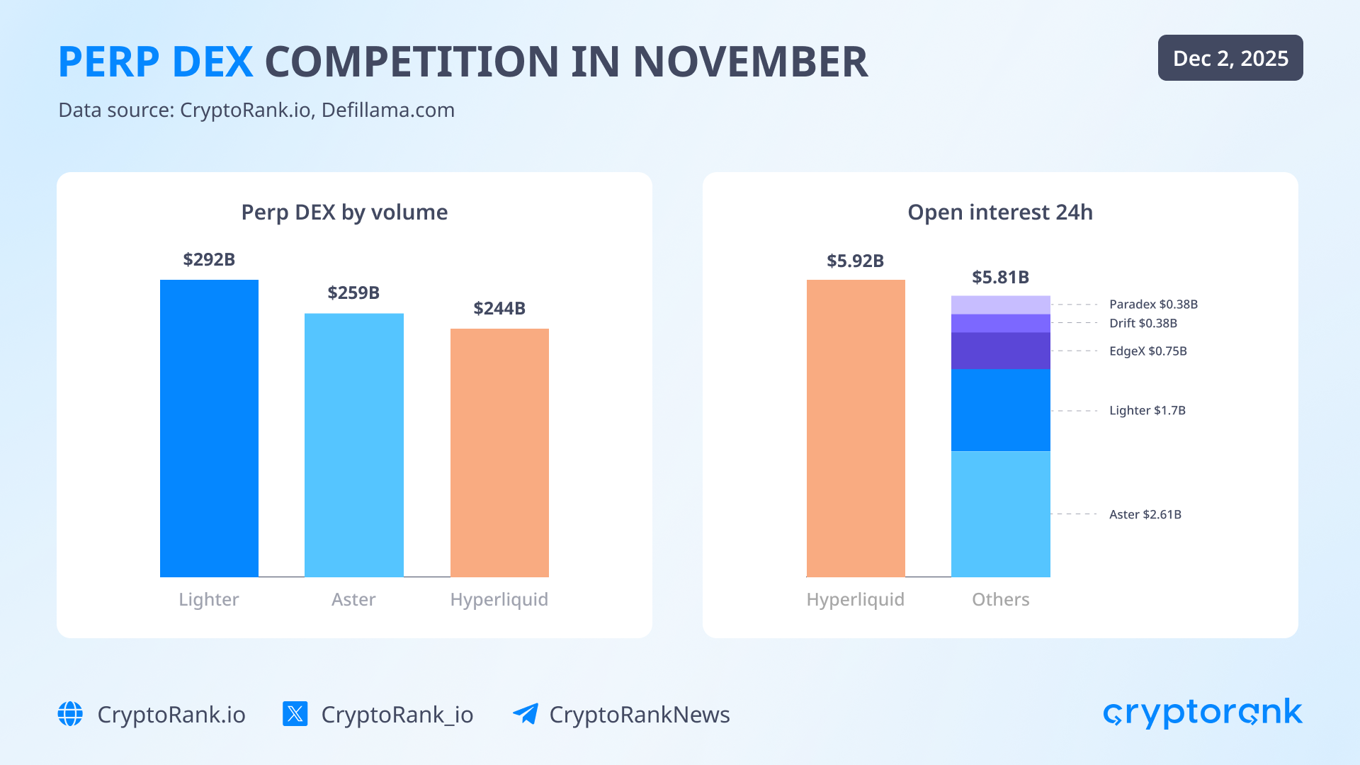 November 30 — Lighter Became The Top 1 Perp DEX by Volume